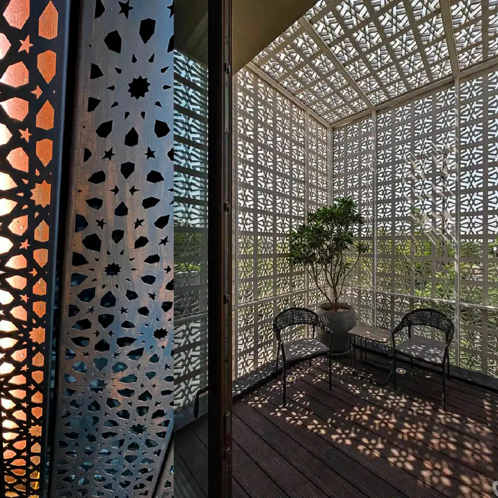 Diseño que transforma. Resistencia que perdura. En Metamateriales, fabricamos paneles de corte láser en acero con patrones personalizados que se adaptan a cualquier proyecto arquitectónico, interior o exterior.