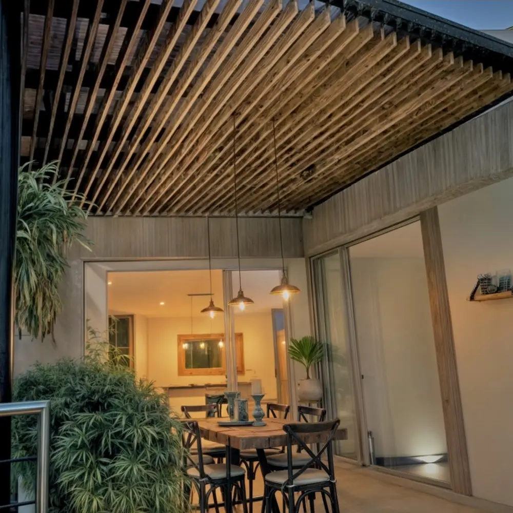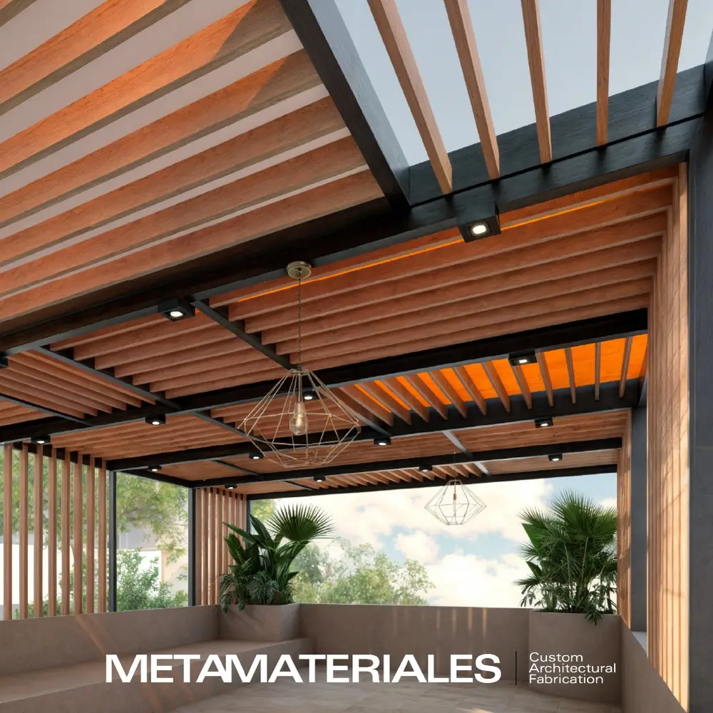 Creamos estructuras que conectan diseño, funcionalidad y sostenibilidad. En Metamateriales, diseñamos y fabricamos pérgolas personalizadas para transformar espacios abiertos en áreas sociales o comerciales protegidas, elegantes y duraderas.
