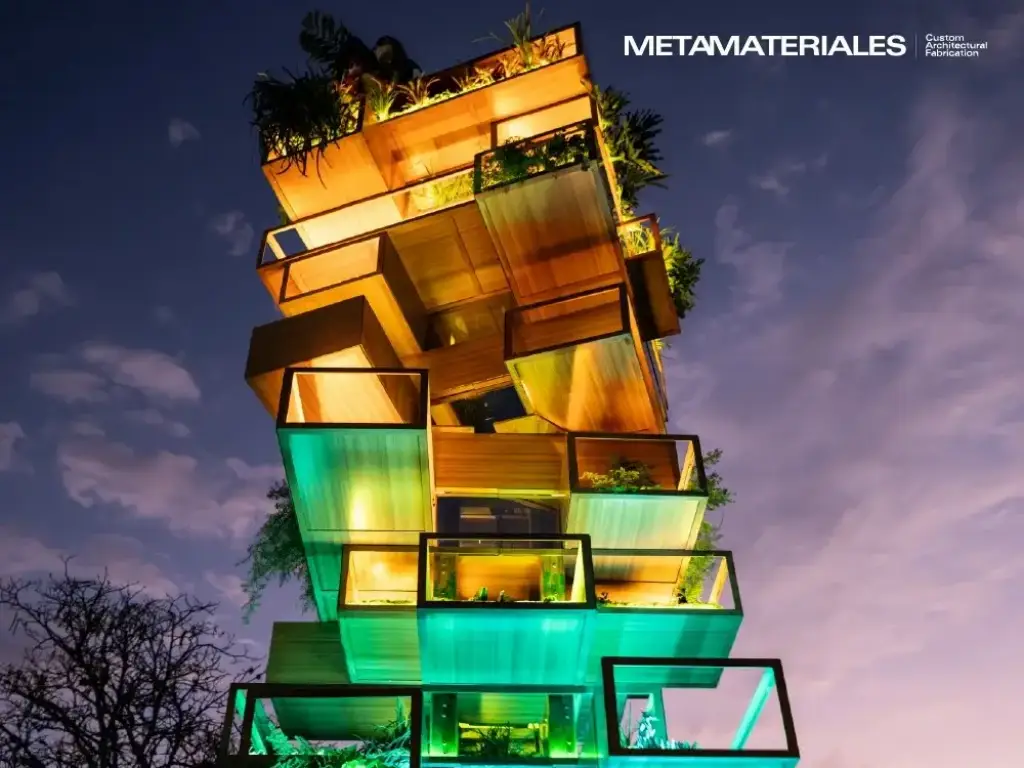 Para Metamateriales fue todo un reto crear la fachada de éste hotel ya que es una obra de arte en sí misma, con formas geométricas, colores vibrantes y materiales de alta calidad que le dan un toque moderno y elegante.