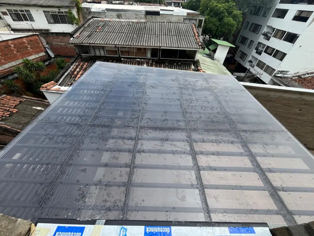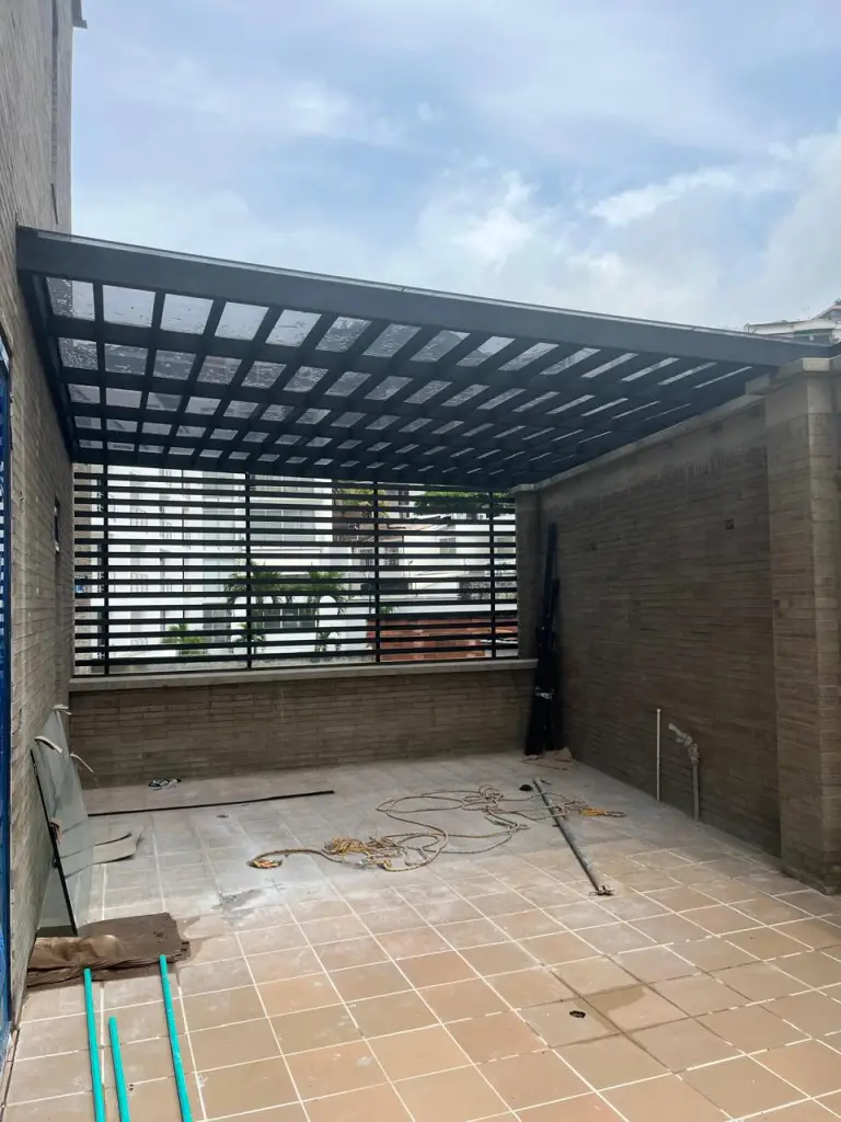 Metamateriales SAS diseñó, fabricó e instaló una pérgola metálica de 15 m x 4,5 m con vidrio laminado y paneles decorativos para nuestro cliente, Fundación Valle del Lili (@fundacionvalledelili), en Cali.