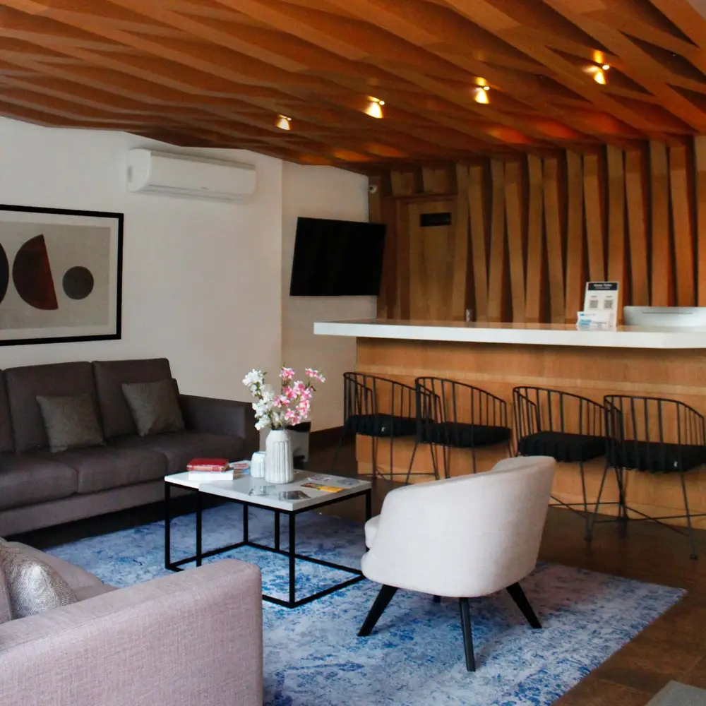 Al entrar al lobby, te sentirás como en casa, ya que es un espacio amplio y luminoso, donde podrás relajarte en cómodos muebles, disfrutar de la tranquilidad de la zona o admirar las obras de arte que adornan las paredes.