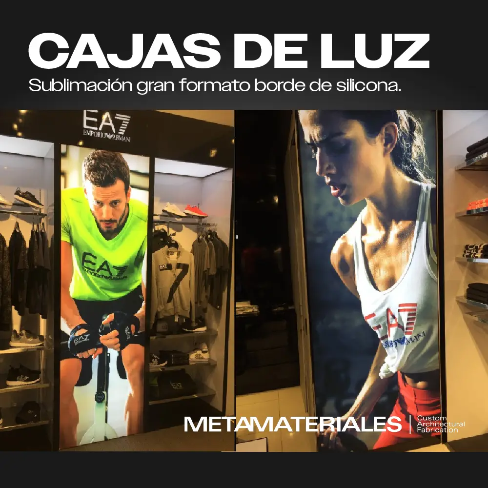 Iluminación de alto impacto con gráficos intercambiables. Nuestras cajas de luz GBS (Borde de Silicona) son una solución elegante y moderna para la exhibición de imágenes en espacios comerciales, oficinas, eventos y más. Gracias a su sistema de borde de silicona, permiten un cambio rápido y sencillo de gráficos, sin necesidad de herramientas ni adhesivos.